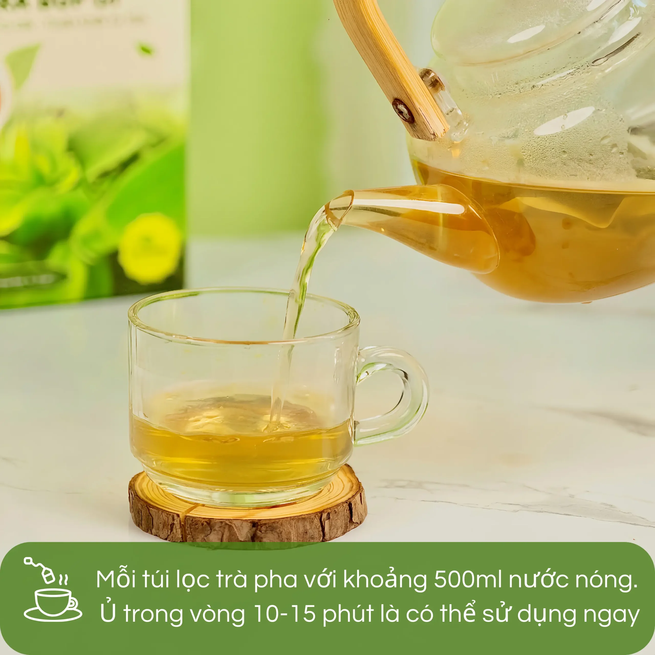 - Hãm trà trong 3–5 phút ( hãy nhúng túi lọc vài lần nhé)