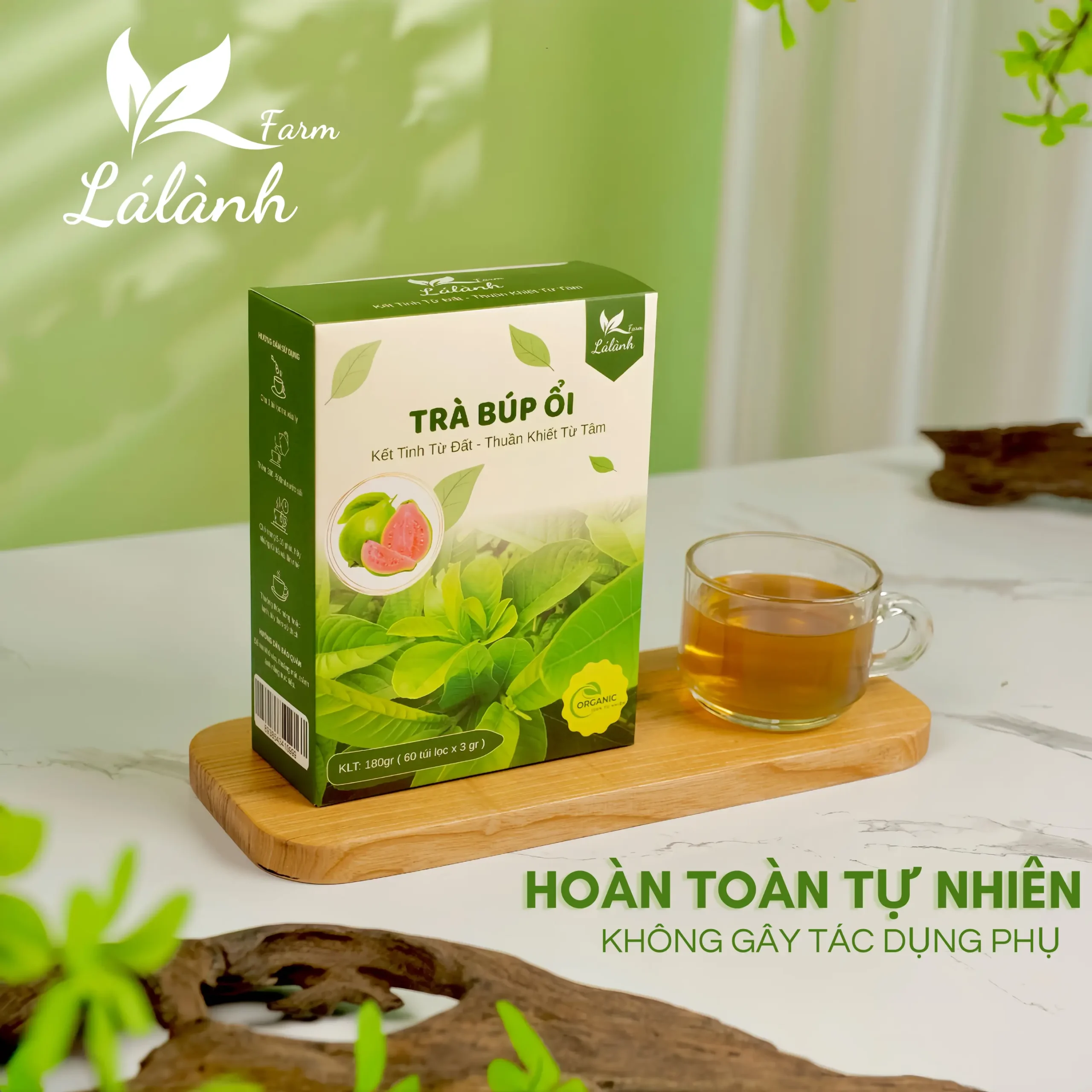 Lá Lành Farm – thương hiệu thảo mộc thuần Việt – giới thiệu Trà Búp Ổi được chế biến từ 100% lá ổi non và búp ổi hữu cơ. Sản phẩm có hương thơm thanh mát, vị dịu ngọt tự nhiên, giúp bạn thư giãn và nạp năng lượng mỗi ngày. Không chứa phẩm màu, hương liệu hay chất bảo quản, Trà Búp Ổi Lá Lành Farm cam kết nguyên liệu sạch, an toàn cho sức khỏe, phù hợp lối sống lành mạnh.