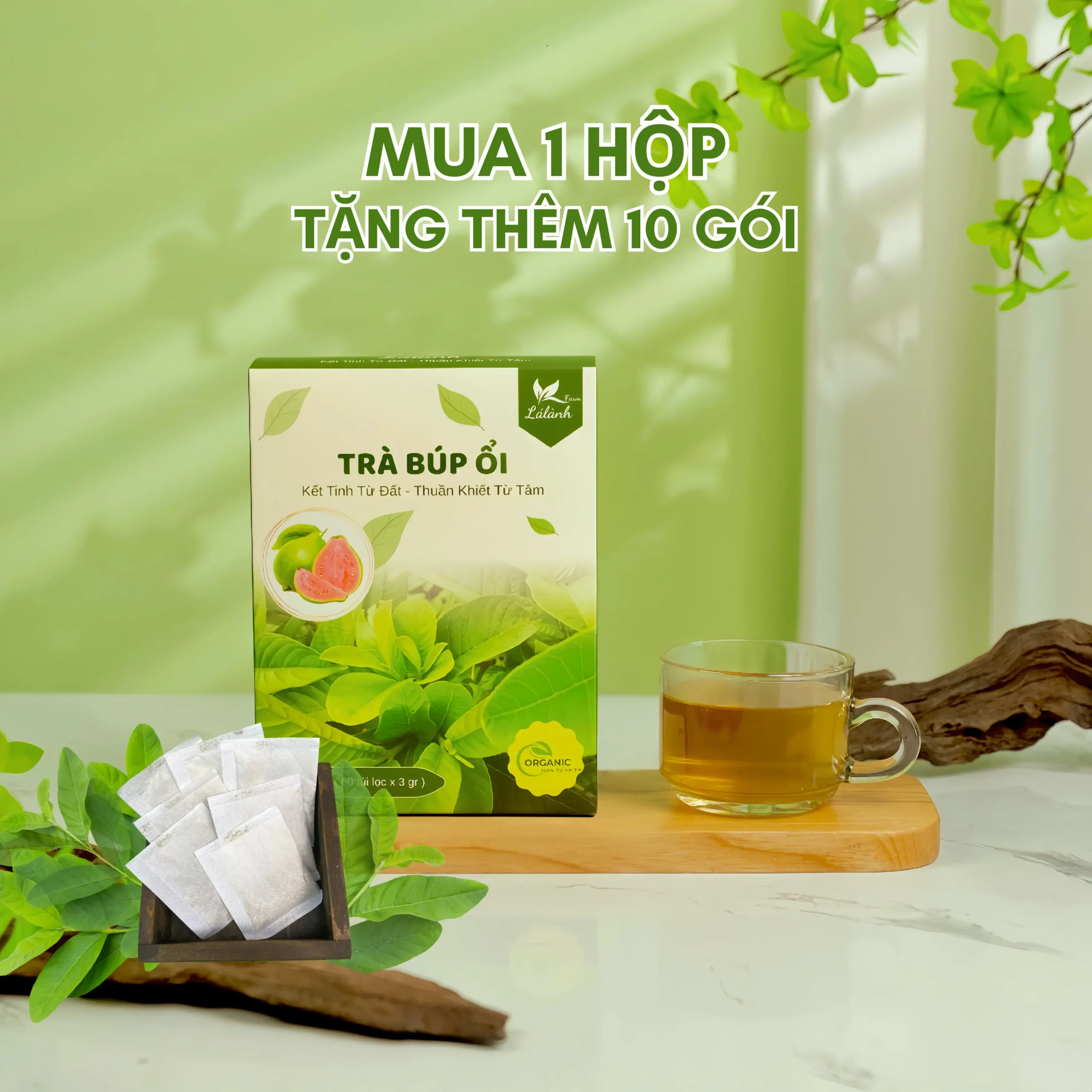 1 hộp 60 gói tặng 10 gói TRÀ BÚP ỔI NON