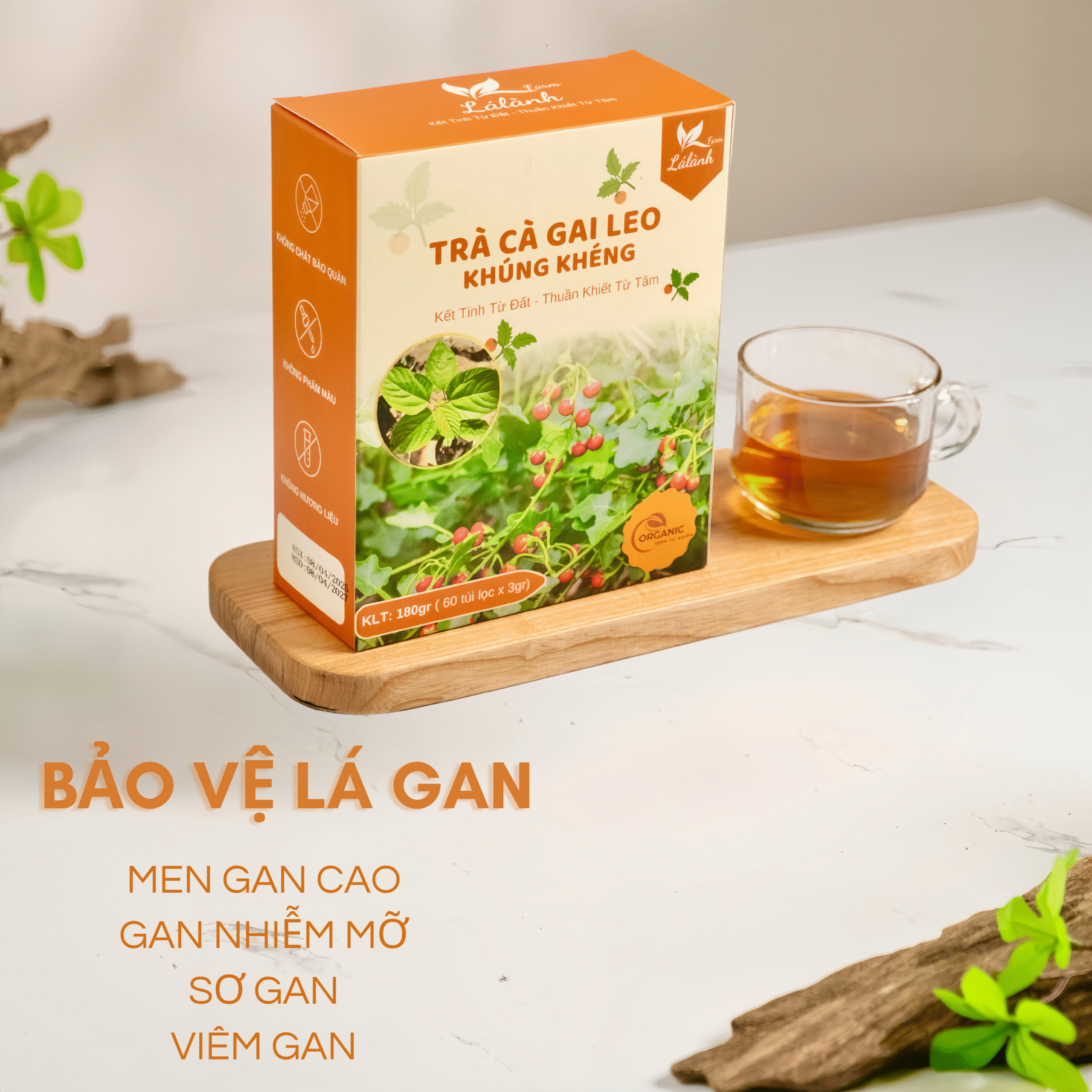 Trà Cà Gai Leo Khúng Khéng là sản phẩm ĐỘC QUYỀN chỉ có tại Lá Lành Farm . Là sự kết hợp giữa: Cà gai leo, khúng khéng, xạ đen, diệp hạ châu, cỏ ngọt tạo nên hương vị thanh nhẹ, thơm mát hoàn toàn tự nhiên, không phẩm màu, hương liệu và chất bảo quản. Sản phẩm giúp hỗ trợ giải độc gan, tăng cường chức năng gan, cải thiện giấc ngủ và nâng cao sức khỏe. Quy cách hộp 180g gồm 60 túi lọc tiện lợi, dễ sử dụng mỗi ngày.