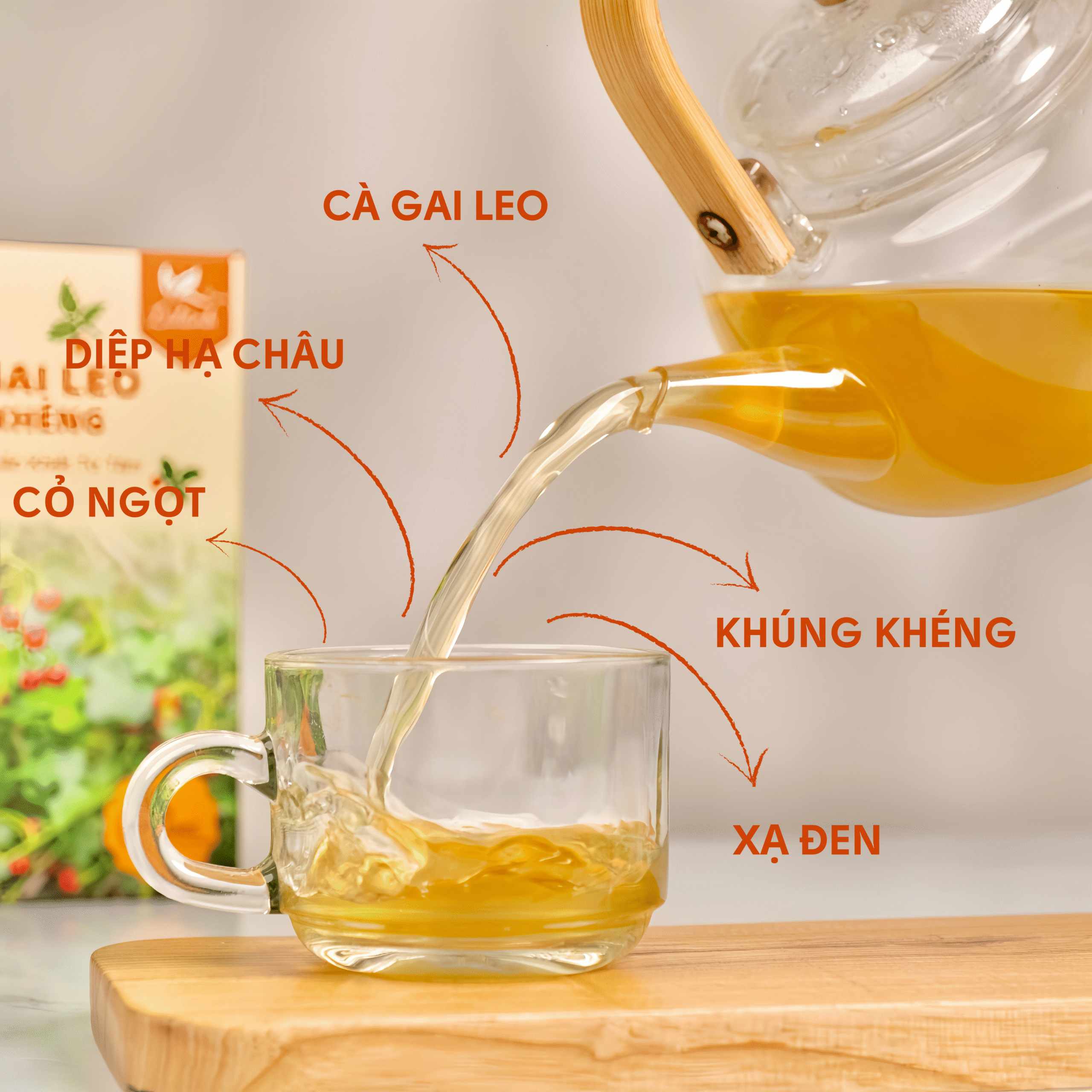 • Hỗ trợ bảo vệ gan: Các dược chất trong Cà gai leo và Khúng khéng kết hợp hữu hiệu trong việc bảo vệ và tái tạo tế bào gan. Trà giúp thanh lọc, giải độc gan, hạ men gan và ngăn ngừa xơ gan tiến triển